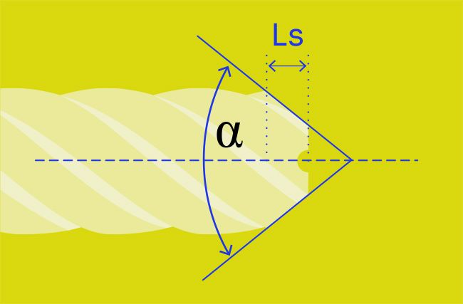 INDICARE LA LARGHEZZA DELLO SMUSSO E L'ANGOLO IN RELAZIONE AL CENTRO DELLA FRESA
